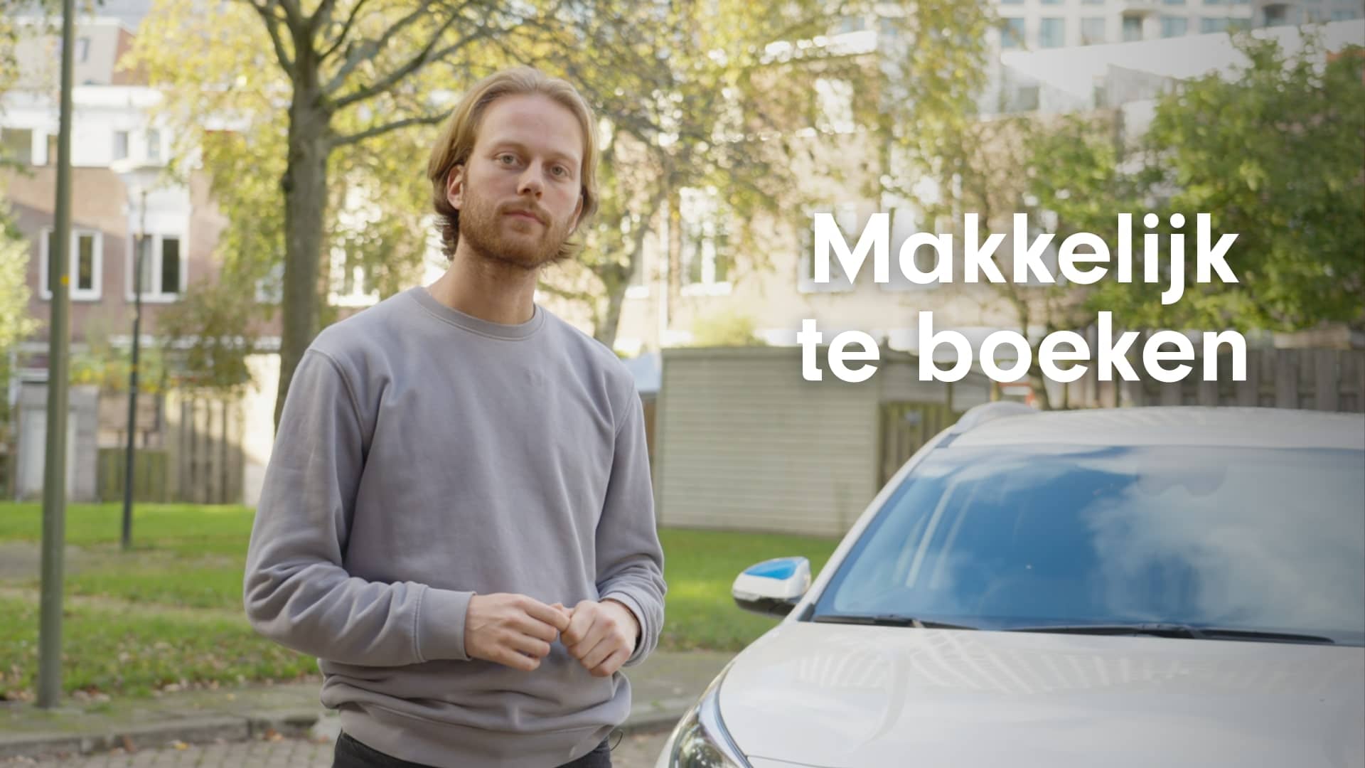 JONGE MAN: Hoi, ik ben Joris en ik maak wel eens gebruik van een deelauto. Ik woon zelf in de stad, dus vrijwel alles waar ik zijn moet, is makkelijk te bereizen met het OV, maar soms moet ik voor m'n werk ook op een plek zijn die minder makkelijk te bereizen is en dan maak ik graag gebruik van een deelauto.